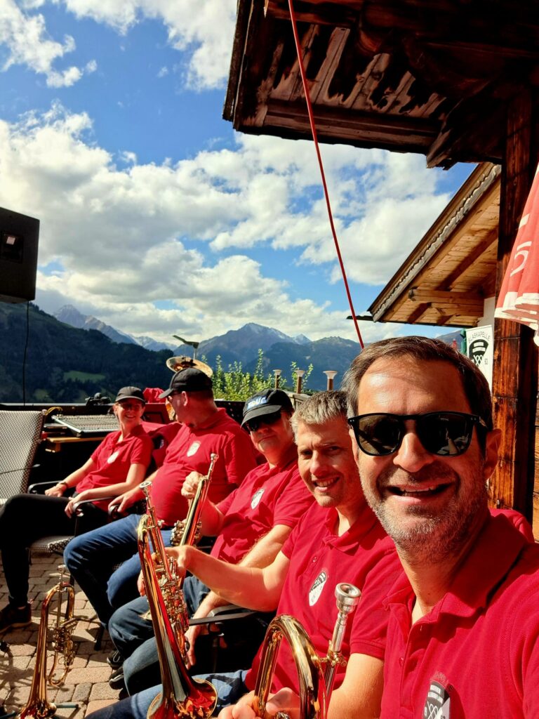 Insgesamt standen vier musikalische Auftritte auf dem Programm: Den Auftakt bildete ein Konzert am Donnerstagabend in der Kuppelbar des Hotels Kirchbichlhof, das mit viel Applaus vom Publikum aufgenommen wurde. Am Freitagnachmittag sorgte die Kapelle in der Hohenhaus Tenne in Hintertux für ausgelassene Stimmung, bevor am Samstagmittag bei strahlendem Kaiserwetter ein unvergesslicher Auftritt auf dem Enzianhof in Zell am Ziller folgte. Den musikalischen Abschluss der Reise gestalteten die Musikerinnen und Musiker am Samstagabend spontan erneut in der Kuppelbar des Hotels Kirchbichlhof.